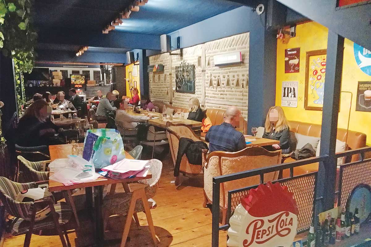 Μπαίνοντας στη μεγάλη σάλα του ισογείου του σχεδόν άδειου από κόσμο μπαρ το βλέμμα μας έπεσε πάνω σε ούτε δέκα άνδρες, ηλικίας άνω των 40 χρόνων, που κάθονταν γύρω από στρογγυλά τραπεζάκια, περιμένοντας στωικά να φτάσει η στιγμή που θα ανέβαιναν στον πρώτο όροφο, προκειμένου να ξεκινήσουν το φλερτ πρόσωπο με πρόσωπο. Εμφανώς περισσότερο αγχωμένες οι -λίγο παραπάνω από δέκα- γυναίκες των ίδιων πάνω κάτω ηλικιών οι οποίες συμμετείχαν στην εκδήλωση (σ.σ.: όπως θα πληροφορούμασταν αργότερα, ο κορονοϊός είχε «χτυπήσει» αλύπητα κάποιους από τους άνδρες συμμετέχοντες), περίμεναν κι εκείνες την ώρα που θα έκαναν εξάσκηση στην τέχνη της… σαγήνης, σε μια προσπάθεια να γοητεύσουν το άτομο του άλλου φύλου που θα τους κέντριζε το ενδιαφέρον!
