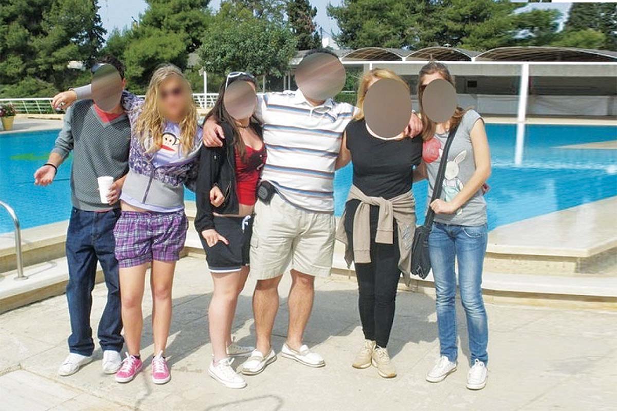 Ο εκπαιδευτικός ποζάρει με μαθήτριες