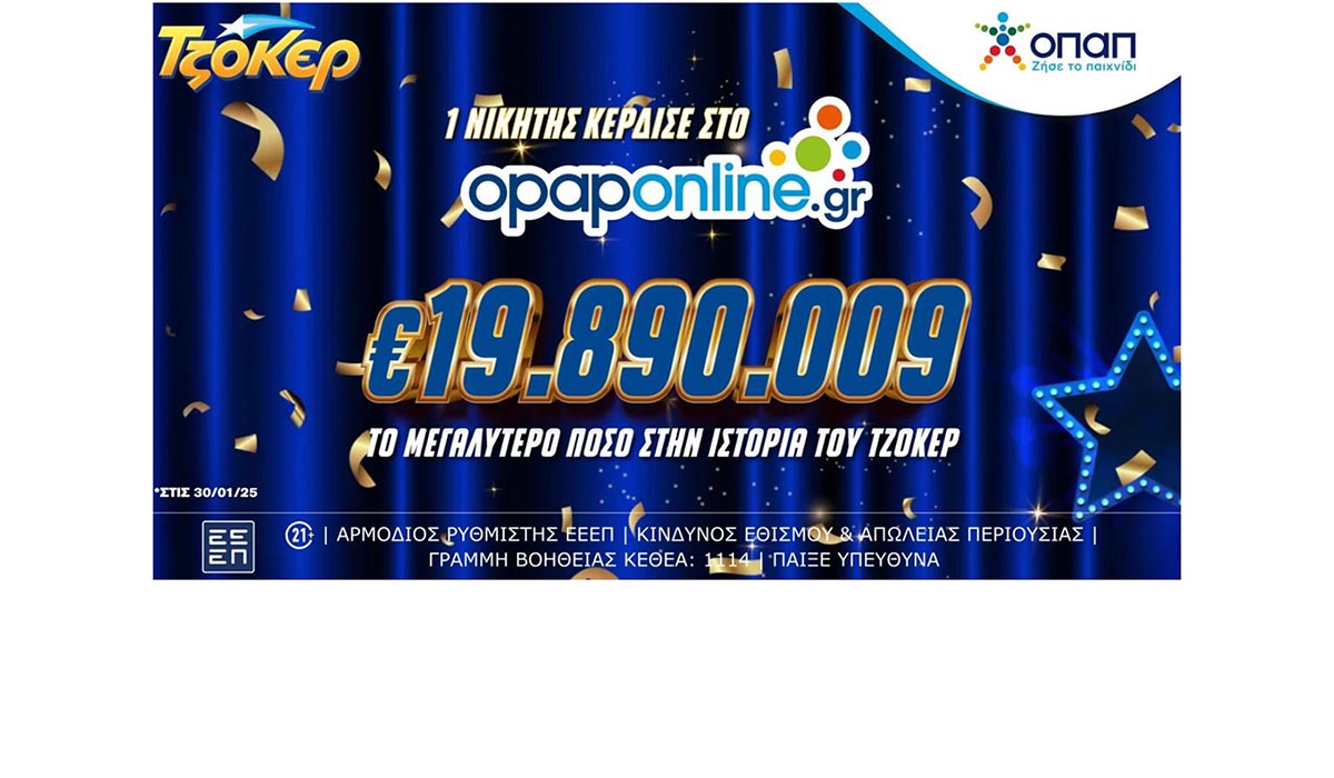 ΤΖΟΚΕΡ: Κέρδισε 19,8 εκατ. ευρώ μέσω του opaponline.gr και έσπασε όλα τα ρεκόρ