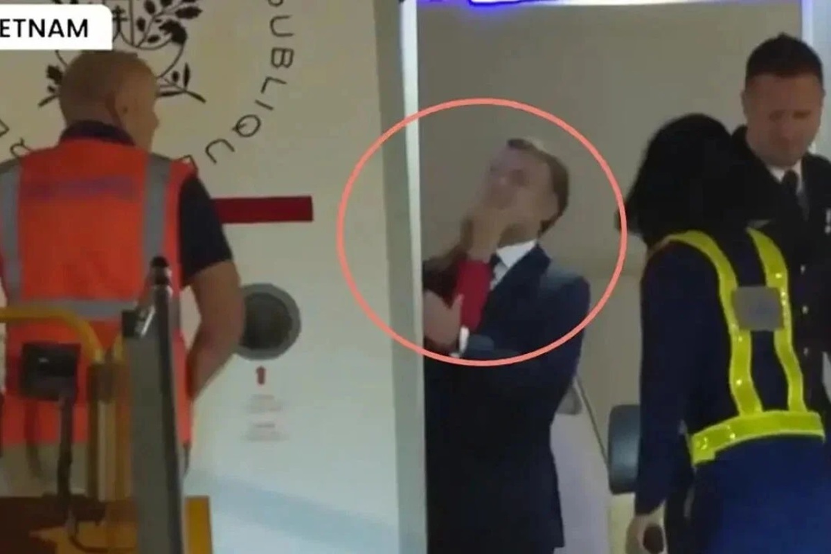 Όλα άρχισαν όταν το προεδρικό αεροπλάνο της Γαλλίας προσγειώθηκε στο Ανόι του Βιετνάμ και άνοιξε η πόρτα για να βγει έξω ο πρόεδρος Μακρόν. Ξαφνικά εμφανίστηκαν δύο χέρια -φαίνεται ότι είναι της Μπριζίτ- και έσπρωξαν με δύναμη το πρόσωπο του Εμανουέλ, με αποτέλεσμα αυτός να δυσκολευτεί να ξαναβρεί την ισορροπία του πριν χαιρετήσει τον κόσμο.