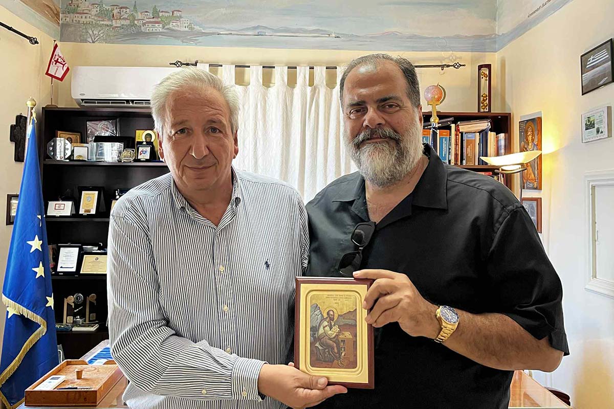 Η ανακοίνωση έγινε την Τρίτη 15 Ιουλίου, κατά την επίσκεψη του κ. Πατέρα στο Δημαρχείο Οινουσσών, όπου ο δήμαρχος Γεώργιος Δανιήλ τον υποδέχτηκε με τιμές, εκφράζοντας θερμές ευχαριστίες για την πολύπλευρη προσφορά του στο ακριτικό νησί. Μάλιστα, τον ενημέρωσε αναλυτικά για τα εκτελούμενα και μελλοντικά έργα που υλοποιούνται στις Οινούσσες, επισημαίνοντας την αδιάλειπτη στήριξή του προς την τοπική κοινωνία. Στο πλαίσιο της συνάντησης, ο δήμαρχος ευχαρίστησε ιδιαίτερα τον κ. Πατέρα για τις πρόσφατες δωρεές του προς το νησί, που αφορούν ένα σύγχρονο περιπολικό όχημα για την ενίσχυση του Αστυνομικού Σταθμού Οινουσσών και ένα επιβατικό αυτοκίνητο για τις καθημερινές ανάγκες του δήμου.