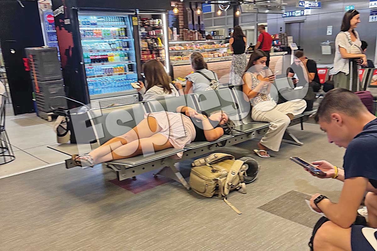Το αεροδρόμιο, αν και μοντέρνο, άρτια σχεδιασμένο, με διεθνείς προδιαγραφές, έχει μετατραπεί σε κάμπινγκ «τουριστικής ασυδοσίας», με εκατοντάδες επισκέπτες να συμπεριφέρονται χωρίς κανένα ίχνος σεβασμού, σαν να βρίσκονται σε… κατασκήνωση! Παπούτσια πάνω στα καθίσματα στα gates αναχωρήσεων και στη μεγάλη αίθουσα των check-in, τουρίστες ξαπλωμένοι στα καθίσματα καταλαμβάνοντας τέσσερις και πέντε πέντε θέσεις (με ηλικιωμένους και οικογένειες να αναζητούν μάταια κάπου να καθίσουν) και άλλοι να κοιμούνται στα πατώματα!