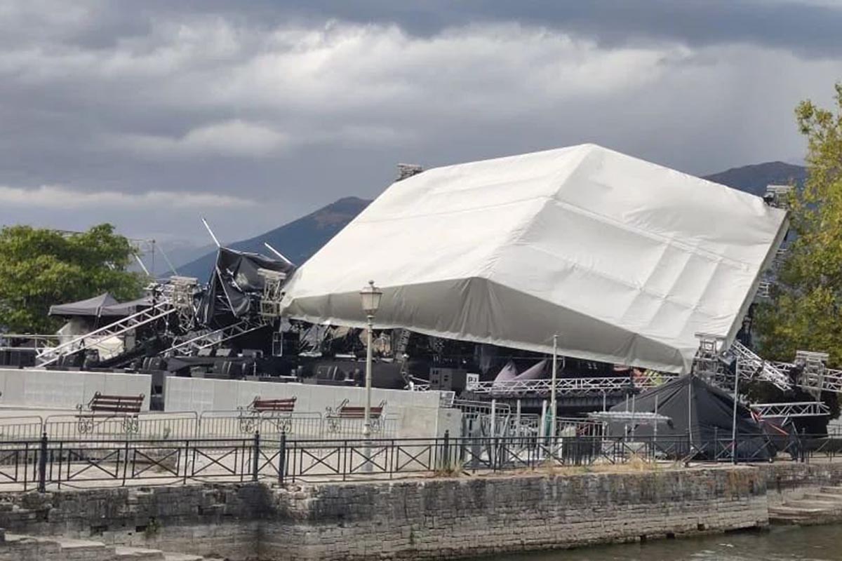 Το περιστατικό, που λίγο έλειψε να πάρει τραγική τροπή, συνέβη λίγο μετά τις 17.00, ενόσω ήταν σε εξέλιξη οι πυρετώδεις προετοιμασίες για την πολυαναμενόμενη συναυλία. Εξαιτίας των ισχυρών ανέμων που σάρωσαν την περιοχή κοντά στη λίμνη η σκηνή κατέρρευσε, μετατρέποντας τον χώρο που προοριζόταν για την πραγματοποίηση της συναυλίας σε βομβαρδισμένο τοπίο!