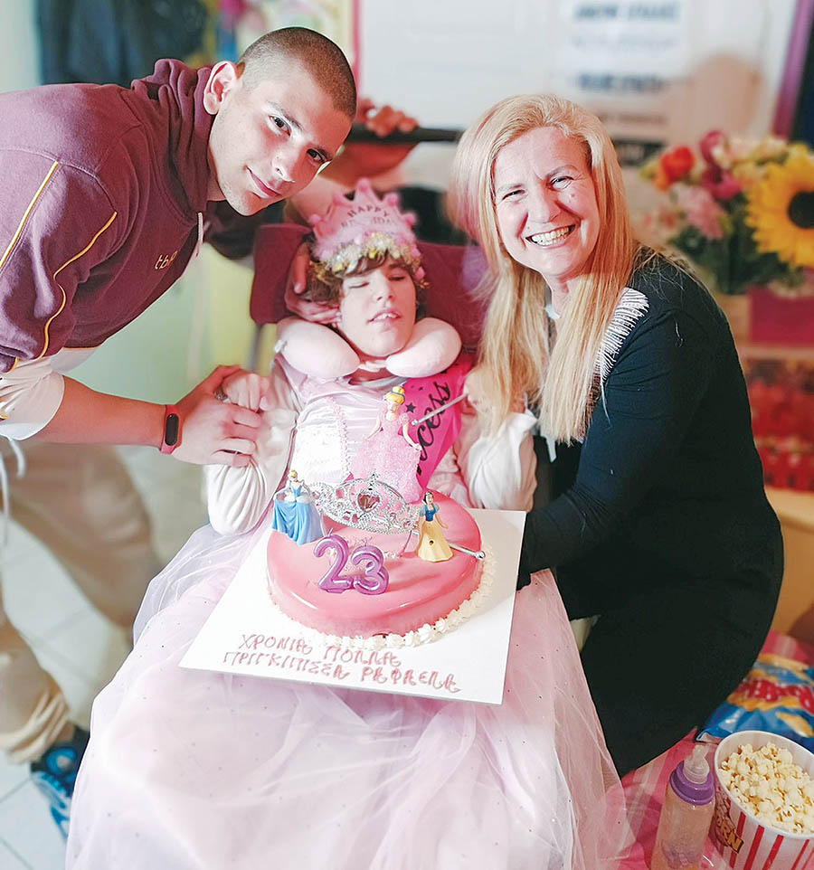 Παρά πολύ! Είναι ο εφιάλτης για κάθε μητέρα με παιδί ΑμεΑ, πιστεύω! Εχω μεταφέρει στον γιο μου ότι δεν θα ζήσει η Ραφαέλα σε ίδρυμα πάνω από μια εβδομάδα! Εχει μάθει με αγάπη, στοργή και στήριξη να έχει από εμάς και αυτό της δίνει ζωή! Αν τα χάσει, θα χαθεί (σ.σ.: όση ώρα απαντάει σε αυτή την ερώτηση κλαίει…). Ο Θεός ελπίζω και εύχομαι να μας πάρει μαζί, γιατί είμαστε πια ένα!