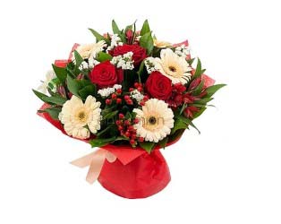 Ρομαντικό μπουκέτο με κρεμ και κόκκινα άνθη