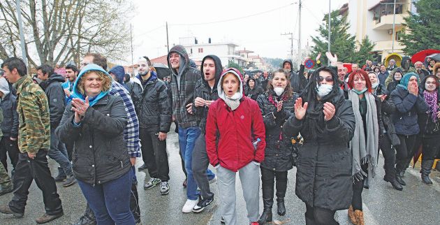Η ατμόσφαιρα χθες μύριζε… μπαρούτι από νωρίς το πρωί, όταν στην περιοχή έκαναν την εμφάνιση τους δεκάδες πάνοπλοι άντρες των ΜΑΤ που συνέδραμαν στις προανακριτικές έρευνες των αρχών για τον εντοπισμό των άγνωστων δραστών, οι οποίοι συμμετείχαν στην εμπρηστική επίθεση που πραγματοποιήθηκε στα μεταλλεία χρυσού στις Σκουριές πριν από λίγες μόλις βδομάδες. Στο άκουσμα της είδησης πως η αστυνομία θα προχωρήσει σε νέες έρευνες και ελέγχους, εξαγριωμένοι κάτοικοι της Ιερισσού συγκεντρώθηκαν μαζικά στην είσοδο του χωριού και απέκλεισαν τον δρόμο προκειμένου να εμποδίσουν την έλευση των διμοιριών των ΜΑΤ που φορώντας αντιασφυξιογόνες μάσκες κατευθύνονταν προς το μέρος τους. Την ίδια στιγμή έστησαν πρόχειρα οδοφράγματα και άναψαν φωτιές σε κάδους απορριμμάτων, με αποτέλεσμα οι δυνάμεις των ΜΑΤ να προχωρήσουν σε χρήση χημικών προκειμένου να τους διαλύσουν και να ανοίξουν τον δρόμο. Μέσα σε λίγα μόλις λεπτά η ευρύτερη περιοχή είχε μετατραπεί σε πεδίο μάχης. Μάλιστα, σύμφωνα με καταγγελίες κατοίκων και μαθητών, δακρυγόνα έπεσαν ακόμη και μέσα στο προαύλιο του σχολείου που βρίσκεται επί του κεντρικού δρόμου, γεγονός που διέψευσε σε ανακοίνωσή της η ΕΛ.ΑΣ.