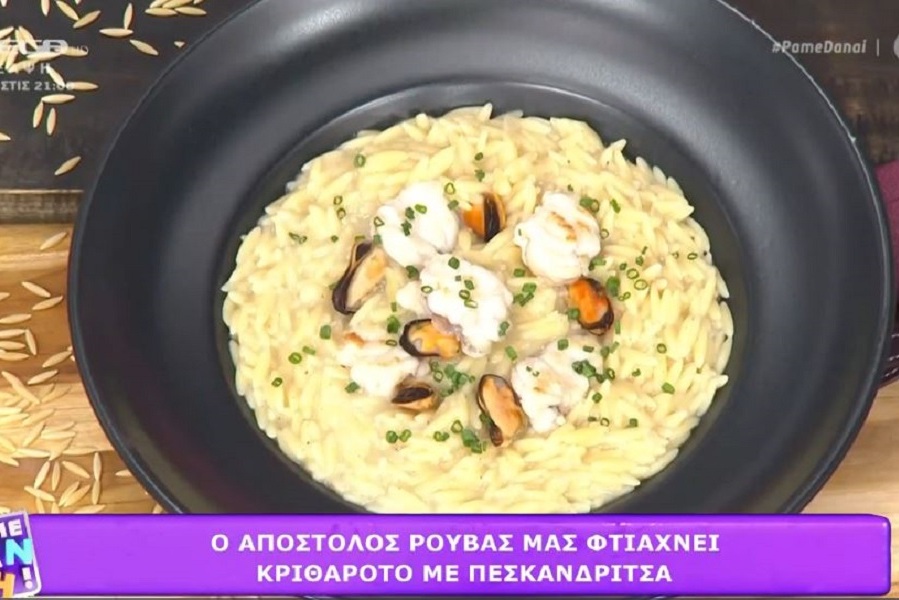 Ο Απόστολος Ρουβάς έφτιαξε στην κουζίνα της εκπομπής «Πάμε Δανάη» κριθαρότο με πεσκανδρίτσα, φέρνοντας τη θάλασσα στο πιάτο σας. Μία άκρως καλοκαιρινή συνταγή.