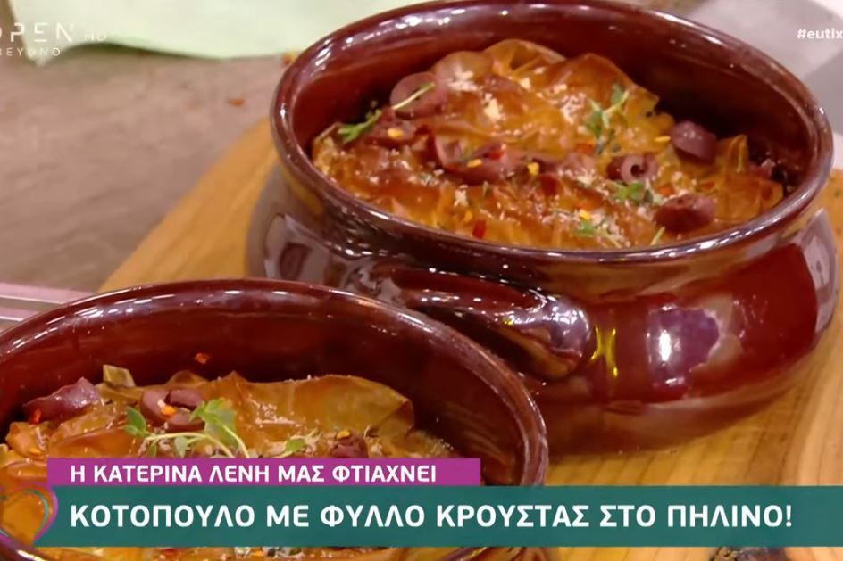 Κοτόπουλο με φύλλο κρούστας στο πήλινο έφτιαξε η Κατερίνα Λένη στην εκπομπή «Ευτυχείτε».