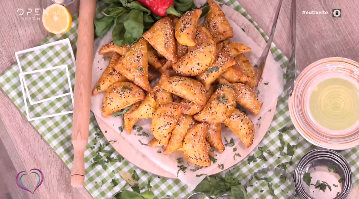 Kρεατοπιτάκια σε φύλλο σφολιάτας έφτιαξε η Κατερίνα Λένη στην εκπομπή «Ευτυχείτε».