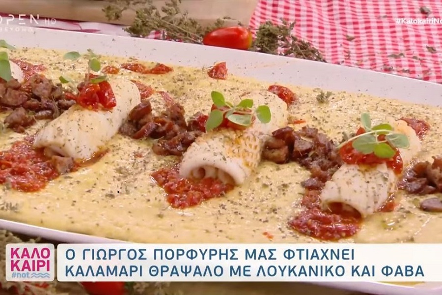 Kαλαμάρι θράψαλο με λουκάνικο και φάβα έφτιαξε ο Γιώργος Πορφύρης στην εκπομπή «Καλοκαίρι#not».