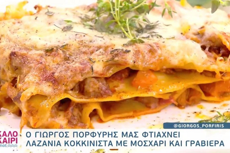 Λαζάνια κοκκινιστά με μοσχάρι και γραβιέρα έφτιαξε ο Γιώργος Πορφύρης στην εκπομπή «Καλοκαίρι#not».