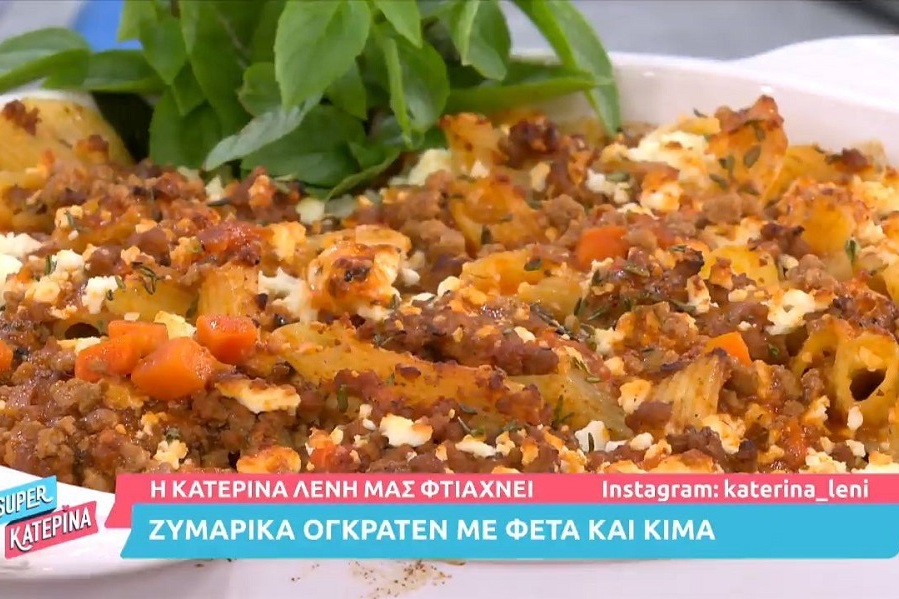 Η Κατερίνα Λένη έφτιαξε στην κουζίνα της εκπομπής «Super Κατερίνα» πεντανόστιμα ζυμαρικά ογκρατέν αλά… παστίτσιο, με φέτα και κιμά!