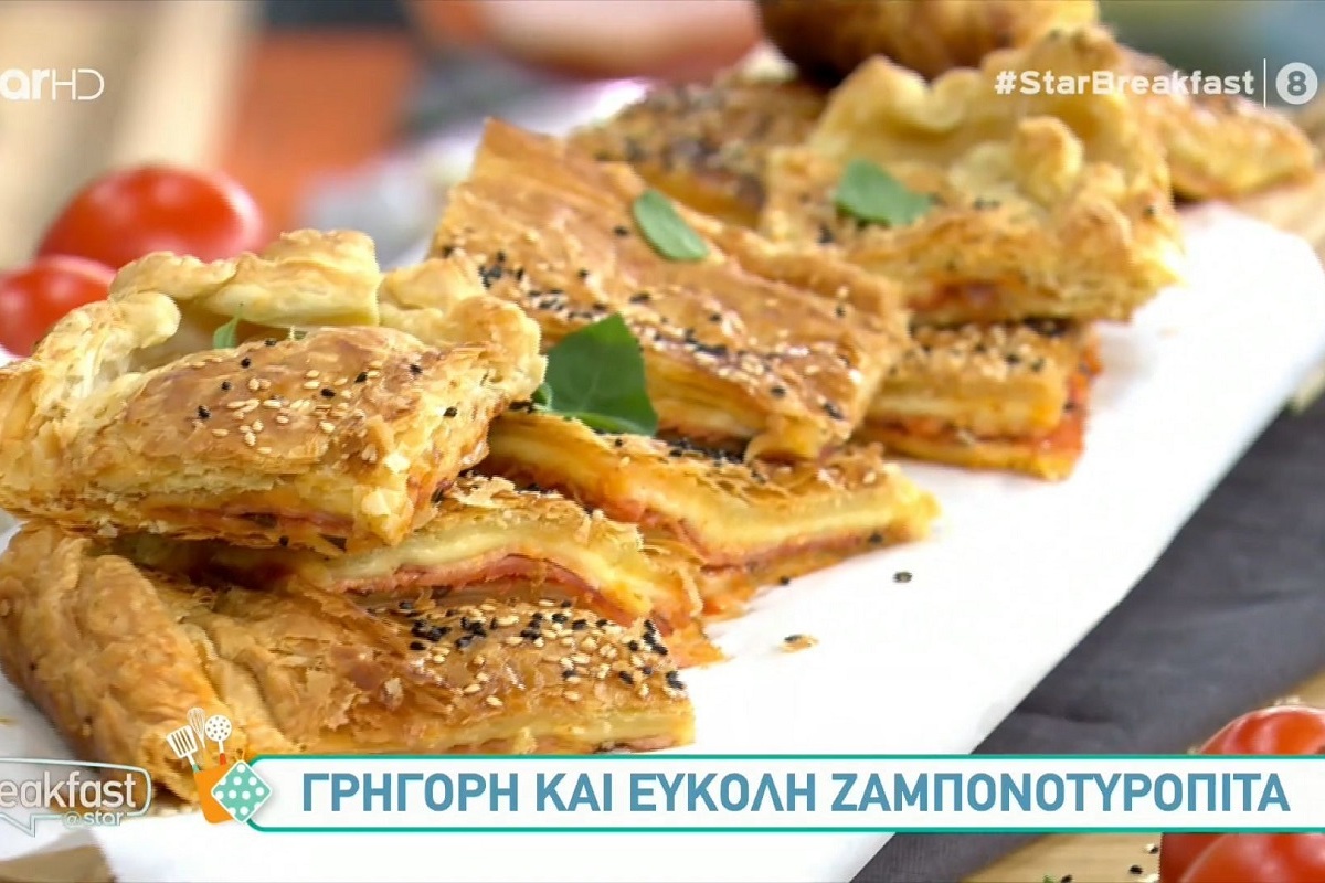 Μία νόστιμη και εύκολη ζαμπονοτυρόπιτα έφτιαξε ο Σταύρος Βαρθαλίτης στην κουζίνα της εκπομπής «Breakfast@star».