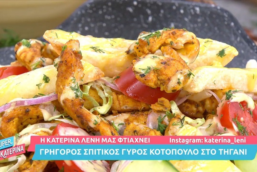 Η Κατερίνα Λένη έφτιαξε στην κουζίνα της εκπομπής «Super Κατερίνα» σπιτικό γύρο κοτόπουλο στο τηγάνι.