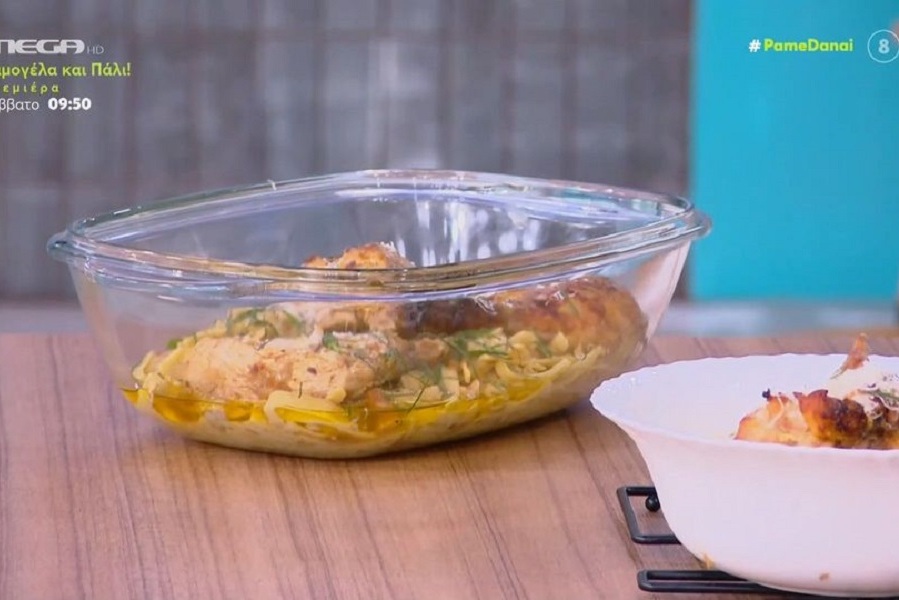 Ο Τίμος Ζαχαράτος έφτιαξε στην κουζίνα της εκπομπής «Πάμε Δανάη» κοτόπουλο με παπαρδέλες και λεμονάτη σάλτσα.