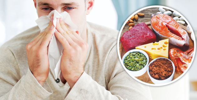 Επιπλέον, ο ψευδάργυρος αυξάνει την παραγωγή λευκών αιμοσφαιρίων και βοηθά πολύ αποτελεσματικά στην καταπολέμηση της λοίμωξης. Σύμφωνα με έκθεση τον Μάρτιο του 2008 στο επιστημονικό έντυπο «The Journal of Infectious Diseases», συμπλήρωμα ψευδαργύρου μείωσε τη διάρκεια του κρυολογήματος από επτά σε τέσσερις ημέρες και τον βήχα από πέντε σε δύο ημέρες. Βρίσκεται στα στρείδια, στο κρέας κοτόπουλου, στο μοσχαρίσιο κρέας, στα αμύγδαλα και στους κολοκυθόσπορους.